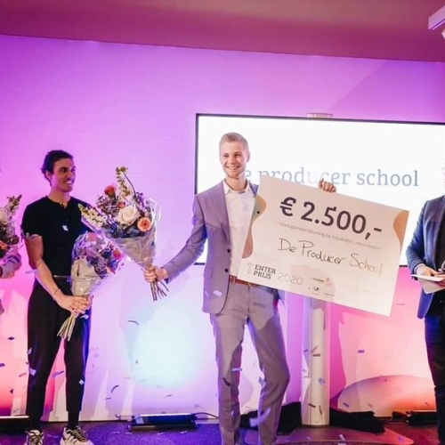 De oprichting van De Producer School vond plaats toen ik nog volop bezig was met mijn studie ‘Media & Entertainment Management’. Met het concept van een online leerplatform voor DJ’s en Producers won ik in februari 2020 de titel ‘Beste Jonge Ondernemer’ in de pitchwedstrijd ‘Enterprijs’.
